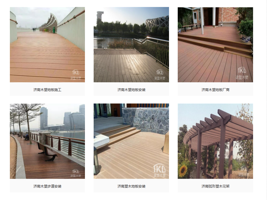 济南建盟木塑建材(电话:18563703099)是一家专业的济南木塑地板墙板生产销售及安装厂家。主要生产销售塑木板材, 济南塑木地板 , 济南生态木,木塑板,木塑墙板,木塑栈道,木塑护栏,木塑隔栅等产品。本着诚信的原则坚持把关每一单产品的质量。有专业的检测设备,以及生产设备,可以按客户需求完成所有园林小品的制作。有专业的设计人员,可以按照客户的需要出图制作,满足客户的各种需求。济南塑木地板公司区位优越,交通便捷,公司附近有环城快速路,周边有大型物流中心。 济南木塑地板厂家生产塑木地板,木塑地板,济南生态木,塑木栏杆,塑木公园椅,塑木椅子条,济南塑木花箱,济南木塑墙板,塑木外墙装饰,塑木花架,塑木廊架,塑木凉亭,塑木户外路径,塑木广告标志牌等户外塑木材料。济南木塑复合材料主要用于园林景观(小品)工程,市政工程和房地产物业等。济南木塑科技产品是由塑料与木质纤维经过特殊处理加工而成的一种新型绿色环保景观材料。济南木塑科技型材优点:不腐烂,不变形,不退色,据虫害,防火性能好,免维护,免油漆等,塑木产品拥有20年使用期。.......